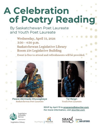 In celebration of National Poetry Month, the Saskatchewan Legislative Library is pleased to host a reading